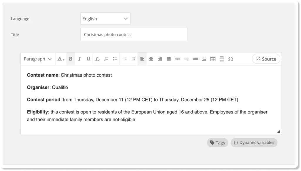 💡 You can also include a checkbox requiring users to confirm that they have read and understood your contest rules. This step is simple, but it reinforces transparency and gives you an additional layer of protection against fraudulent or non-compliant participation.