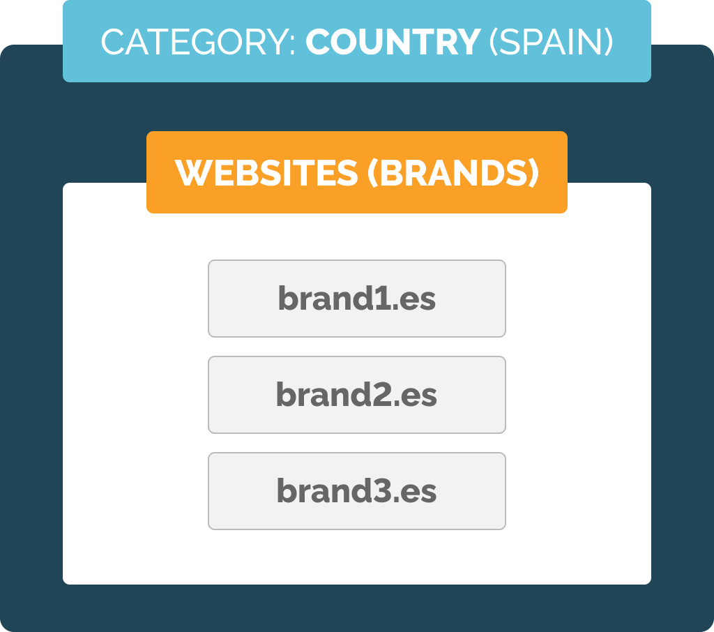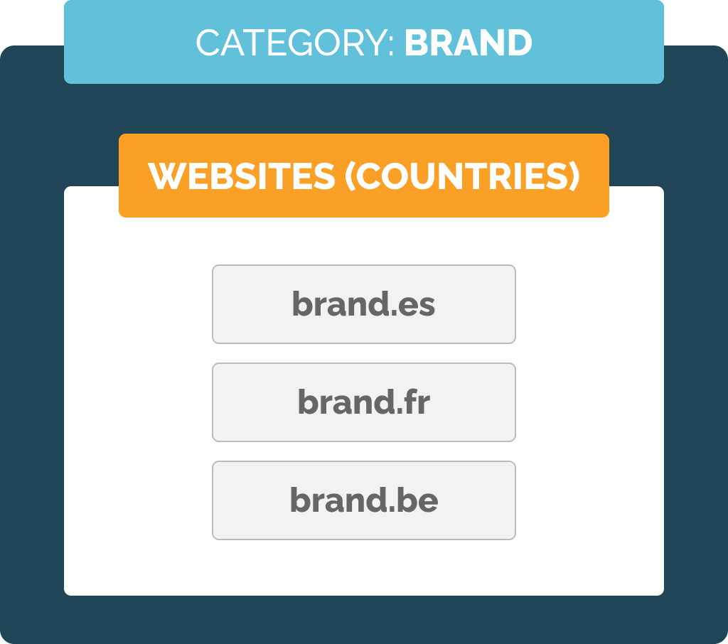 With categories, each of those websites can be tagged as either belonging to a specific brand or a geographical area: